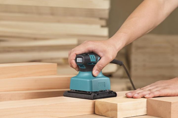 - Lưu ý nên dùng khẩu trang để tránh bụi gỗ và thao tác cẩn thận để máy chà nhám không làm tay bị thương