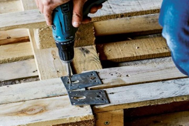 Cách đóng giường bằng gỗ pallet đến bước này đã gần hoàn thành. Theo đó, bạn chỉ cần tạo mối nối giữa các tấm với nhau, xếp thành khuôn. Ngoài ra, bạn hãy để ý vặn thật chặt vít để đảm bảo độ chắc chắn, tránh rung lắc, lỏng lẻo.