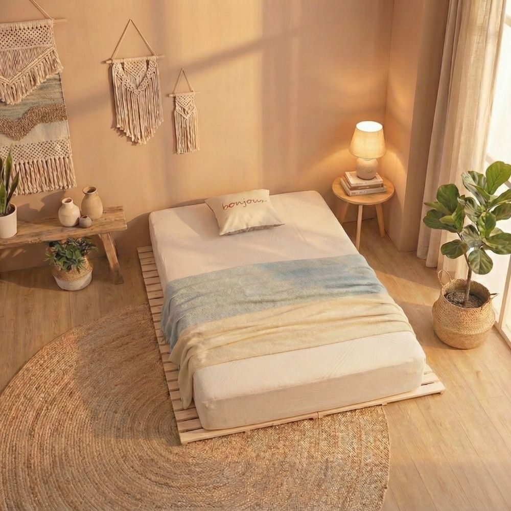 Tùy vào diện tích phòng ngủ và nhu cầu sử dụng, người dùng có thể lựa chọn mẫu giường bệt gỗ, giường pallet hoặc các thiết kế giường bệt hiện đại để tạo nên không gian nghỉ ngơi thoải mái và hài hòa.