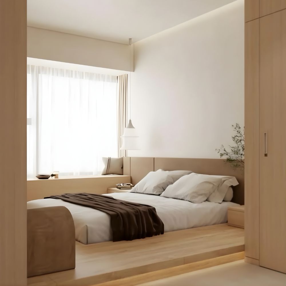 Giường bệt cũng thường xuất hiện trong các không gian nội thất mang phong cách Nhật Bản. Thiết kế thấp và gần gũi với sàn nhà giúp tạo cảm giác thư giãn và hài hòa cho phòng ngủ.