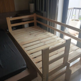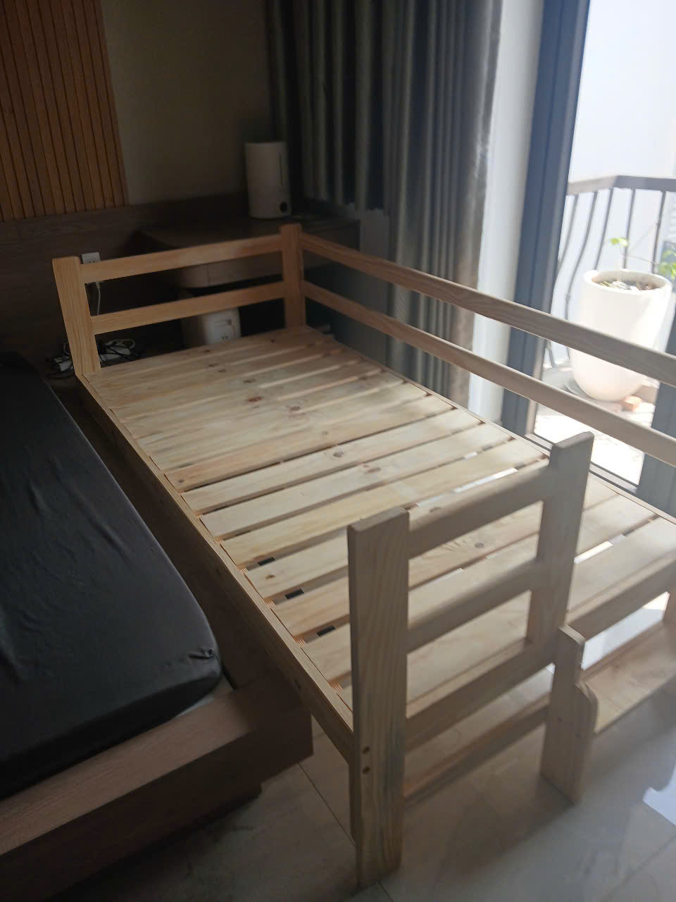 Giường được thiết kế để kê sát giường bố mẹ, tạo thành một không gian liền mạch. Bé có thể ngủ riêng nhưng vẫn nằm ngay bên cạnh người lớn, giúp hạn chế nguy cơ lăn ngã và mang lại cảm giác an tâm hơn trong giai đoạn đầu tập ngủ riêng.